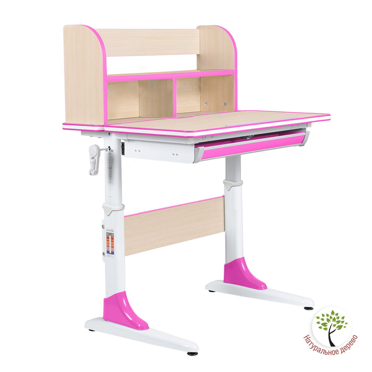С помощью специальной ручки, ребёнок сам сможет плавно и легко отрегулировать высоту парты, чтобы работать как стоя, так и сидя.